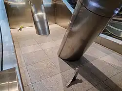 Mayflower station is a designated Civil Defence (CD) shelter and contains a reinforced structure with blast doors. During a chemical attack, the air vents of the station can be shut to prevent the circulation of toxic gases. The CD shelter has dedicated cubicles for chemical decontamination alongside dry toilets.[28]