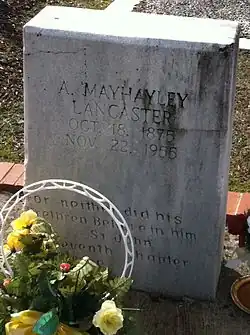Mayhayley Lancaster died Nov. 22, 1955. In addition to her legal, political and educational activities, she was also described as a noted fortune teller, numbers runner and self-proclaimed "Oracle of the Ages". She is buried in the cemetery at Caney Head Methodist Church.