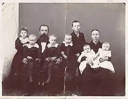Mayme Hanrahan was born in the town of Edgar Springs, in Phelps County, and grew up in the county seat, Rolla. In 1905 she married fellow Phelps County native Edward William "Ed" Ousley, a 1906 graduate of the dental school of Washington University in St. Louis.[1][2] That year the couple moved to St. James, where Edward opened a dental practice and where they would remain for the rest of their adult lives.[3] They soon became active in many local civic organizations,[4] and Dr. Ousley joined the town's semi-professional baseball team. His wife accompanied them on the road as they played. She often scolded them about their appearance; the resulting nickname, “Granny” Ousley, stuck with her.[3] The Ousleys were also heavily involved in the local activities of the Republican Party,[4] and in 1921 Mayme allowed herself to be persuaded to run for mayor.[3] It is said that the catalyst for her run was the placing of a local boy, Jimmie Blank, in the Rolla jail, prior to his being sent to reform school. Ousley claimed that when she went to bring him back, she asked why it was imperative that he be sent away without a further hearing; upon receiving an unsatisfactory answer, she retrieved the boy and began planning her run, claiming that "the only way I knew of finding out the things I wanted to know was to become may”r."[5]