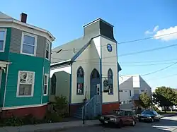 Mayo Street Arts is a community arts and performance venue in the East Bayside neighborhood of Portland, Maine. It was founded in 2010 by Blainor McGough[1] after leasing the building which was formerly St. Ansgar Church.[2] Mayo Street Arts' second executive director, Ian Bannon, succeeded McGough in May 2020 following McGough's resignation.[3] Located next to Kennedy Park, a public housing development and close to many other public housing areas, Mayo Street Arts serves as a theater, concert venue, art gallery, and meeting space and offers affordable artist studios, rehearsal space, and a teaching platform for visual and performing artists of multicultural backgrounds.[4] Programming is varied, but with a particular focus on puppetry, folk music, and dance.[4]