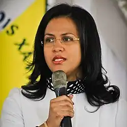 On 3 February 2009, after declaring himself to be in charge of the country, Rajoelina was dismissed as Mayor and a special delegation, headed by Guy Randrianarisoa, was appointed instead. Rajoelina denounced the decision, saying that there was "no valid reason" for it and that he was prepared to face arrest if necessary; he warned that the city would "not accept this decision".[2] At a rally on 4 February, Rajoelina described the appointment of Randrianarisoa as "an insult to the people of Madagascar"; he instead designated Michèle Ratsivalaka to succeed him as Mayor and gave her his mayoral scarf.[3] Rajoelina took power as head of state in March 2009. He later replaced Ratsivalaka with Edgard Razafindravahy, who served without vice-presidents throughout his term.[4] He resigned in August 2013 to enter in the 2013 presidential election and the city of Antananarivo remained without leadership until November 2013, when Olga Rasamimanana was named to one of the vice-presidency positions, making her de facto mayor of Antananarivo.