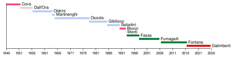 | 5 | Mario Ossola | 1964 | 1978 | DC |