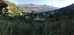 The area where the village stands was known as Deir ʿaouza (Arabic: دير عوزه, Syriac: ܕܝܪܐ ܥܘܙܐ, romanized: Dīrā ʿOzā), meaning “The Highest Monastery” or "Monastery of Strength" in reference to the village’s ancient Maronite monastery situated high up in the mountainous village.[3][4]