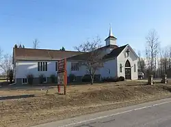 McAllister was a stop between Wagner and Packard on the Wisconsin & Michigan (W. & M.) Railway line from Bagley Junction to Iron Mountain.[4] The rail line through McAllister was discontinued in 1938, when the tracks were torn out and the rolling stock sold off.[4][5][6] A post office was established in McAllister in 1895 and operated until 1966.[7] Segal Haulotte (1871–1939) served as the first postmaster at McAllister; he held the position for 26 years and also operated a general store.[8] Mike Pissato operated a cheese factory in McAllister in the 1920s.[9] The cheese factory was purchased by Theodore Phillips in 1929.[10] In 1946, the Franciscan Friars of the Assumption of the Blessed Virgin Mary Province in Pulaski purchased a riverside property in McAllister as a summer camp and retreat, dubbing it Villa Alvernia.[11]