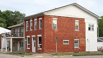 The McClaine House is a historic building located in Guttenberg, Iowa, United States. This two-story brick structure has historically been a combination residence and commercial building. Sanborn maps list the commercial space as housing: a barber shop (1886), cigar factory (1902), and swelling (1928).[2] The second floor is four bays wide, while the main floor is three bays. The middle two windows on the top floor each have a small window located above. Across the top of the structure there is a plain cornice that is enhanced by modillion blocks. The building was listed on the National Register of Historic Places in 1984.[1]