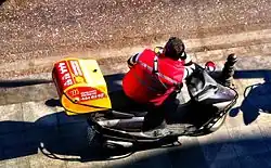 Most, if not all, orders are delivered on motorcycles, which are painted with McDonald's colours and logo. Logistics are outsourced to Rixon Delivery and Flow Logistics. The firm initially recruited delivery workers on a "self-employment" basis. The labour rights of the workers came to media attention in 2009, after some motorcyclists were severely injured in traffic accidents but were refused compensation.[39] According to news reports, neglect on the part of Rixon may have contributed to these accidents, because of the way the delivery storage on the motorcycles was modified.[40] After intervention by the Labour Department, Rixon retroactively recognized its delivery workers as employees, making them eligible for unemployment and other employee benefits.[41][42]