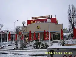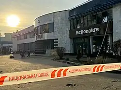 ![]() Ukraine's first McDonald's store near Lukianivska metro station in Kyiv, damaged by a Russian attack in 2023 | |