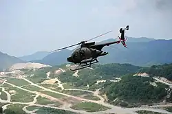 - It is a military light scout attack helicopter developed from OH-6 Cayuse.[14][15] It incorporating simple fixed-forward sighting system, FN Herstal weapons management system, Rohde & Schwarz M3AR tactical mission radio and Dillon Aero mission configurable armament system (MCAS) weapons plank.[16][15]