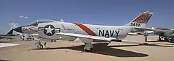 A reconnaissance version of the aircraft, the F3H-2P, was proposed, but ultimately never built.[39] The Demon was flown as the U.S. Navy's front-line fighter up until 1962, at which point it was succeeded by the newer and faster F-4 Phantom II (which was a development of a proposed "Super Demon", a larger and much heavier version of the F3H).[40] Developed during the Korean War to counter the MiG-15, it did not claim any aerial victories either with missiles or during dogfights, although it flew over Lebanon and Quemoy during 1958.