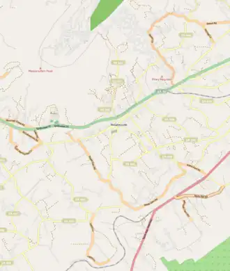 McGaheysville lies in northern central Virginia in the northeastern United States. It lies along the U.S. Route 33, between Penn Laird to the west and Elkton to the east.[9][10] This road is part of the Spotswood Trail which leads from Harrisonburg located several kilometres beyond Penn Laird to the west. McGaheysville is located near the south fork of Shenandoah River in the heart of the Shenandoah Valley. The land to the immediate south of the village consists primarily of farmland but beyond that is the mountainous Shenandoah National Park. The area immediately north of the village is mountainous with the peak of Massanutten, located just to the northeast.[9] Piney Mountain, even nearer to the village than Massanutten, is located in the northeastern part of McGaheysville.