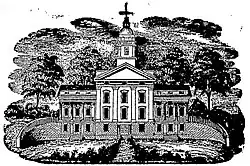 ![]() Main building, 1850. The first two floors held classrooms and the third a dormitory for male students. | |