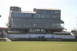 The eastern end of ground did not have a stand in place, just grass and a scoreboard that was demolished in 2011.[28] This was for standing room. No lighting for the playing field was built and therefore the venue did not host night games once they were introduced. Some lights were installed for darker day games to support the player's vision. Entry into the ground was by a staffed turnstile and could be made from all stands.