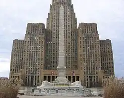 The McKinley Monument is a 96-foot (29 m) tall obelisk in Niagara Square, Buffalo, New York. Its location in front of Buffalo City Hall defines the center of Buffalo that all of the main roads converge on.[1]