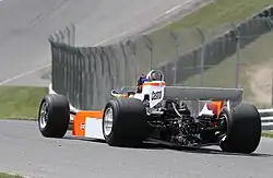 Following a disastrous 1978 season, James Hunt left for Walter Wolf Racing and was supposed to be replaced by Ronnie Peterson but he was killed at the 1978 Italian Grand Prix. McLaren was left with few drivers available on the market and John Watson was signed for 1979.[1] The car was noticeably larger than contemporary designs and was much bulkier looking. Three chassis were built. The bulky design had a sharp impact on top speed, and the car was one of the slowest through speed traps. The car first appeared on track in October 1978 during a test at Watkins Glen.[2]