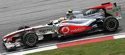 The McLaren MP4-25 is a Formula One racing car designed and raced by McLaren in the 2010 season. The chassis was designed by Paddy Lowe, Neil Oatley, Tim Goss, Andrew Bailey and John Iley and was powered by a customer Mercedes-Benz engine. The car, which was driven by 2009 World Champion Jenson Button[2] and 2008 World Champion Lewis Hamilton,[3] was officially unveiled at title sponsor Vodafone's headquarters in Newbury, Berkshire, UK on 29 January 2010.[4][5] The MP4-25 was the first McLaren car to be independently built by McLaren alone, becoming a Mercedes customer team after the works team rejoined the series as a full-constructor team by purchasing a 75% stake of Brawn GP.