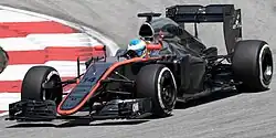The McLaren MP4-30 was a Formula One racing car designed by Tim Goss and Neil Oatley for McLaren to compete in the 2015 Formula One season.[3][4][5] The car was driven by 2005 and 2006 World Drivers' Champion Fernando Alonso, who returned to McLaren eight years after he last drove for the team[6] and 2009 World Champion Jenson Button.[6] Kevin Magnussen, who drove for the team in 2014, temporarily stood in for Alonso after a test accident.[7] Additional testing and development work was carried out by Magnussen, Stoffel Vandoorne and Oliver Turvey.[8][9] The car was the first built by McLaren since the MP4/7A—which contested the 1992 season—to be powered by a Honda engine, known as the RA615H,[10] after McLaren ended their twenty-year partnership with Mercedes at the end of the 2014 season.[11][12]