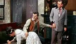 McLintock! is a 1963 American Western comedy film, starring John Wayne and Maureen O'Hara, directed by Andrew V. McLaglen. The film co-stars Wayne's son Patrick Wayne, Stefanie Powers, Jack Kruschen, Chill Wills, and Yvonne De Carlo (billed as special guest star). Loosely based on William Shakespeare's The Taming of the Shrew, the project was filmed in Technicolor and Panavision, and produced by Wayne's company, Batjac Productions.