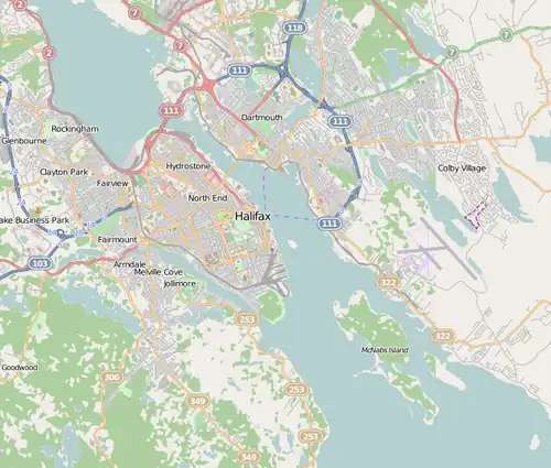 McNabs Island (formerly Cornwallis Island) is the largest island in Halifax Harbour located in Halifax Regional Municipality, Nova Scotia, Canada. It played a major role in defending Halifax Harbour and is now a provincial park. The island was settled by Britons in the 1750s and later by Peter McNab, and McNab family members lived on the island until 1934.[1]