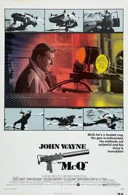 In a contemporary review, Arthur D. Murphy of Variety called the film "a good contemporary crime actioner" that was "extremely well cast. Coproducer Lawrence Roman's script has some good twists, turns and ironies, caught well by director John Sturges."[4] Kevin Thomas of the Los Angeles Times compared McQ favorably to the recent Magnum Force (the sequel to Dirty Harry): "The most intriguing aspect of John Wayne's diverting but undistinguished new picture 'McQ' at selected theaters is its similarity to Clint Eastwood's 'Magnum Force' ... The difference—and it may be crucial—is that Wayne, blustering and bombastic as ever, dominates his film whereas it's violence for violence's sake that takes over 'Magnum Force.' Eastwood's film looks lots more chic, but 'McQ' has lots more humanity."[5] Gene Siskel of the Chicago Tribune gave the film two-and-a-half stars out of four and wrote: "Like so many of his recent movies, 'McQ' would be nothing without Wayne. In fact, less than nothing, because tho its story takes a high number of unexpected turns, the pacing is excruciatingly slow, its supporting characters excruciatingly vapid. And yet the film holds together around Wayne."[6] Pauline Kael also criticized the pace, dismissing the film as "prostratingly dull",[7] as did Nora Sayre of The New York Times, who wrote: "In this wildly undramatic picture, music and gunshots have to provide the gumption that the acting lacks. Surely Mr. Wayne should stick to Westerns: he's simply too slow to play any kind of policeman. Horseless in the streets of Seattle, he looks as though he needs a shot of sand."[8] Gary Arnold of The Washington Post wrote: "'McQ' can be recommended if you're in the mood for a commercial movie so stiff and perfunctory that it becomes unintentionally funny ... Wayne really should have enough savvy to realize that he looks ridiculous speeding around town in a green Hornet. This sporty image doesn't do anything for him anymore than his toupee does."[9]