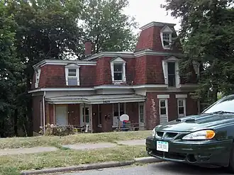 The Meadly House is a historic building located in the West End of Davenport, Iowa, United States. The Second Empire structure was built in 1881 for the Meadly family. Elizabeth Meadly was listed the longest at this residence. Four other people, possibly boarders or renters, were listed at this address by 1900. This house, and the nearby Albert Kiene House, are unique in that they are single story, brick residences with a high pitched Mansard roof that features prominent gabled dormers.[2] The roughly cross-shaped house also has a small Mansard superimposed on the projecting pavilion, and a porch in the northeast reentrant angle. It originally had Eastlake details. The house has been listed on the National Register of Historic Places since 1984.[1]