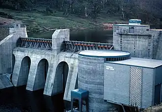 Part of the Derwent scheme that comprises eleven hydroelectric power stations, the Meadowbank Power Station is the final power station in the scheme. The power station is located above ground, below Meadowbank Lake, a small storage created by the concrete buttressed Meadowbank Dam on the Derwent River. The facilities at the Meadowbank Power Station are simple and include the dam, intake structure with intake gate designed to cut off full flow, a short penstock which is integral with the dam, the power station building, generator equipment and associated facilities.[1][2]