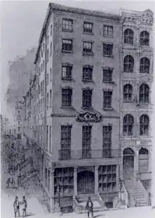 In 1802, the Society bought a property at 239 Broadway and soon established Mechanics Hall there.[4] In 1831 it moved to 30–36 Crosby Street and in 1843 moved again to the Crosby Street Annex at 472 Broadway.[4] In 1877 it moved yet again to No. 18 Sixteenth Street where it had purchased land and built a new building.[4]