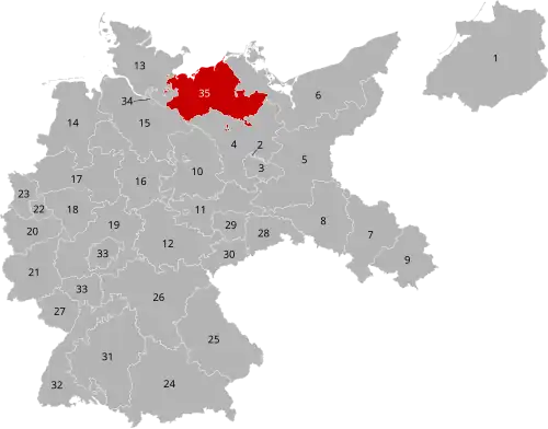 It comprised the states of Mecklenburg-Schwerin, Mecklenburg-Strelitz, and Lübeck. It was constituency 35 in the numbering scheme.[1]