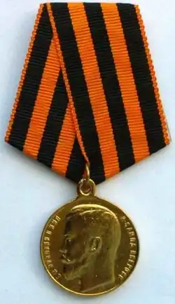 The Medal "For the Victory Over Germany in the Great Patriotic War 1941–1945" (Russian: Медаль «За победу над Германией в Великой Отечественной войне 1941—1945 гг.», romanized: Medal' «Za pobedu nad Germaniyey v Velikoy Otechestvennoy voyne 1941—1945 gg.») was a military decoration of the Soviet Union established on May 9, 1945, by decree of the Presidium of the Supreme Soviet of the USSR[1] to denote military participation in the victory of the Soviet armed forces over Nazi Germany in the Great Patriotic War.