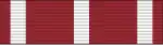 This medallion is worn on the left chest, on a 38 millimetres (1.5 in) wide crimson ribbon with three vertical white stripes: for men, hung from a bar, and for women, on a ribbon bow, both pinned to the left chest.[1] Should an individual already possessing a Medal of Military Valour be awarded the medal again for subsequent valourous acts, he or she is granted a simple gold medal bar, bearing a maple leaf at its centre, for wear on the ribbon from which the original medal is suspended;[1]