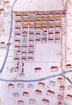 Their first buildings were simple, with thatched roofs. The houses of the most important people were two stories tall, and the church and the Cabildo were unimpressive. It was only during the 18th century that the church was improved. Only one story, the Cabildo was located at the western part of the plaza. It had a thatched roof until 1742 when tiles were put on. In 1682, traders and foreigners started the construction of the Veracruz Hermitage, which was consecrated as a church by the Bishop of Popayán in 1712.[17]