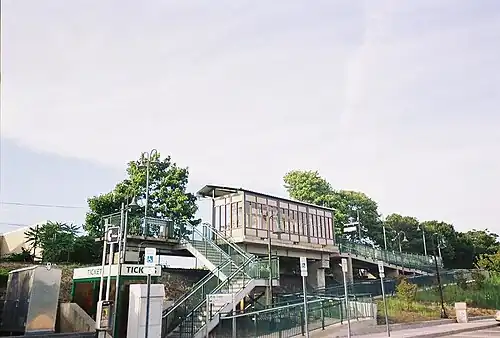 In the late 1990s, the station was rebuilt again in preparation for the new fleet of double-decker coaches, which require high-level platforms for boarding, and for future electrification of the line.[4][5] In the rebuilding, the former ground-level platform was elevated, with a new stairway and a wheelchair access ramp from the parking area, and a small shelter was constructed at platform level.[5]