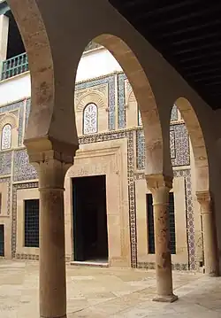 With the fall of the majority of the Aghlabid State in the hands of the Fatimids, Sfax suffered its first crisis since its foundation, when attacked among other cities in 914 by the ruler of Sicily, Ahmed bin Gharb, a strong supporter of the Abbasids, in order to recover the cities of the African coast held by the Fatimids. This conflict ended with the victory of the Sicilian army and the destruction of the city as a punishment upon its inhabitants, even if the Fatimids quickly took control of the city thereafter.[4] However, the locals did not integrate the Ismaili rite brought by the new state and remained faithful to their Maliki doctrine thanks to the support of a great scholar, Abu Ishaq Aljbinyani.[5]