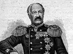 In the second half the 19th century Medininkai was getting furtherly marginalised. One of the reasons was the 1873-built railway line from Vilnius to Minsk; it bypassed the village running some 2 km north of the Ashmyany road, and the nearest station turned to be Kiena/Kena, some 12 km away. According to data from 1885 the Medininkai population was 297, mostly Catholics.[85] At this time the estate again changed hands; after the Kamiński family,[86] its new owner was general Ivan Mikhailovich Labyntsev;[87] he took over also the former religious property, of unclear status since the parish and monastery had been closed down.[88] Following the abolition of serfdom and gradual enfranchisment, estates started to become the property of local peasants, turning into independent farmers; documents from the 1880s note that the land near Medininkai was the property of „generała Łabińcowa i włościan”.[89] It is not clear who inherited the estate once Labyntsev passed away; a document from 1897 notes as "the sole heir" his granddaughter Katarzyna Drohojowska née Komar,[90] but later data lists as the owner her mother, Elżbieta Komarowa, daughter to general Labyntsev.