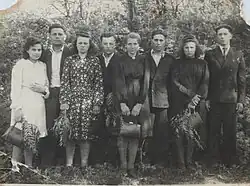 According to the Soviet standard, theoretically the official languages in Medininkai were the republican one, i.e. Lithuanian, and the pan-Soviet Russian. In practice the Kolkhoz language was either Russian or "po prostemu", a rural mixture of Polish and Belarusian. The school, opened in the late 1940s, adopted Polish as the language of instruction,[122] though the management layer was formed by Russians.[123] Until the late 1950s the school educated students until late teenage; in 1956-8 there were 25 boys and girls who completed the curriculum.[122] Later the school switched to 8th grade profile, and since then there was no school above the primary school level in Medininkai. In 1959 Nowa Wilejka/Naujoji Vilnia was incorporated into Vilnius; as a result, the Medininkai Commune was moved from the Naujoji Vilnia County to the Vilnius County. In 1963 the commune was dissolved and Medninkai was incorporated into the newly established Podwarance/Padvarionys Commune, but 1965 marked return to the old setup. What ratio of villagers were members of the Communist Party is unclear.[124]