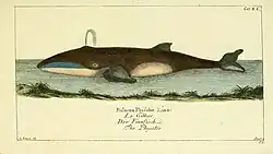 Some archaeological data suggest that cetaceans may have been hunted and consumed during the Roman period, but this seems to have remained fairly localized, and there is no historical record of significant fishing of these animals in the Mediterranean (unlike the Atlantic, where the Basques, for example, hunted cetaceans intensively as early as the Middle Ages).[8] Mediterranean whales are essentially rorquals ("skinny" whales): during the most intense period of industrial whaling (late 19th and early 20th centuries), right whales (cold-water whales, for their blubber) were the main target, so this activity had less impact on the Mediterranean basin.[9] However, several species disappeared from the Mediterranean during historic times (notably the harbour porpoise and the grey whale), and it is still difficult to determine the exact causes and mechanisms leading to these disappearances.[8]