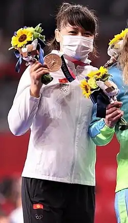 Meerim Zhumanazarova (Мээрим Жуманазарова; born 9 November 1999) is a Kyrgyzstani freestyle wrestler.[1] She won the bronze medal in the women's 68 kg event at the 2020 Tokyo Olympics, and the gold medal in the same event at the 2021 World Wrestling Championships. In the 2024 Paris Olympics, she was defeated by Amit Elor of the United States in the final and earned the silver medal.