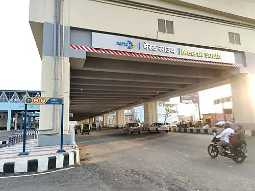 Meerut South RRTS station[3] is the current terminal station of the Delhi–Meerut Regional Rapid Transit System located in the Partapur town of Uttar Pradesh, India. This is the first RRTS station in Meerut for higher-speed trains on the Delhi–Meerut RRTS that can reach speeds of up to 180 km/h. The section Duhai-Meerut South was opened on 18 August 2024, as n extension of the existing 34-km Sahibabad-Modinagar North stretch of the RRTS.[4][5][1]