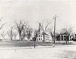 Lyceum Hall, next door to the First Parish Church, was an important center of the community for many years. The Greek Revival-style public meeting hall was built in 1838 and dedicated in 1840.[1] The Lyceum hosted lectures, dances, school classes, and other public gatherings. Local women's abolition groups met there,[12] and it served as a recruiting depot for the Union Army during the Civil War.[13] It became a special needs school in 1891, and was demolished in 1955.[14]