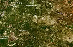 The Megalopoli Mine is a large lignite and coal open-pit mine owned by the Public Power Corporation of Greece that began in the early-1970s after the completion of the Megalopoli Power Plant. It mined approximately 40 km² or 4,000 ha of which 25 to 30 km² or 2,500 to 3,000 ha of land have been mined. With a timespan of 37 years, it is the largest mine in the Peloponnese and southern Greece and is ranked near Amyntaio and after Ptolemaida.