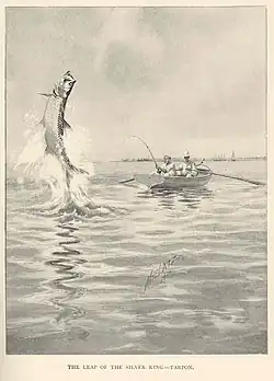 The Leap of the Silver King -- Tarpon (depicts early sport fishing for Atlantic tarpon)