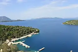 Meganisi (Greek: Μεγανήσι, literally "big island") is a Greek island and municipality immediately to the east-southeast of the island of Lefkada. The municipality includes the offshore islands of Skorpios (pop. 2 persons) and Sparti. The municipality has an area of 22.356 km2.[2]