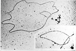 The term plasmid was coined in 1952 by the American molecular biologist Joshua Lederberg to refer to "any extrachromosomal hereditary determinant."[16][17] The term's early usage included any bacterial genetic material that exists extrachromosomally for at least part of its replication cycle, but because that description includes bacterial viruses, the notion of plasmid was refined over time to refer to genetic elements that reproduce autonomously.[18] Later in 1968, it was decided that the term plasmid should be adopted as the term for extrachromosomal genetic element,[19] and to distinguish it from viruses, the definition was narrowed to genetic elements that exist exclusively or predominantly outside of the chromosome, can replicate autonomously, and contribute to transferring mobile elements between unrelated bacteria.[5][6][18]