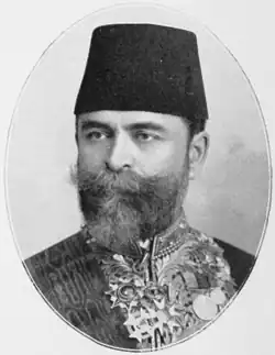 Mehmed Ferid Pasha (Ottoman Turkish: محمد فرید پاشا) (Turkish: Avlonyalı Ferit Paşa or Avlonyalı Mehmet Ferit Paşa, Albanian: Ferit pashë Vlora; 1851, Yanya, Ottoman Empire (modern-day Ioannina, Greece) – 1914, Sanremo, Kingdom of Italy) was an Ottoman-Albanian[1][2][3][4] statesman. He served as the Grand Vizier of the Ottoman Empire from 15 January 1903 until 22 July 1908,[5] at the time when the Sultan restored the 1876 Constitution following the Young Turk Revolution. Other than Ottoman Turkish he spoke the Albanian, Arabic, French, Italian, and Greek languages.[6][7]