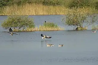 Species that breed here include: white-tailed eagle, sedge warbler, bittern, garganey, peewit, to name only those on the IUNC Red List of Endangered Species. But other rare species also breed here, such as the kingfisher, crane, penduline tit, little grebe, water rail, reed warbler, great crested grebe, cormorant, grey heron, greylag goose, gadwall, red-crested pochard, barn owl, black-headed gull, marsh harrier, coot, shoveler, sparrowhawk and red kite.