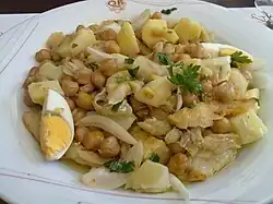Meia-desfeita is a Portuguese dish,[1][2] typically from Lisbon. It consists of cod (Bacalhau), cooked with chickpeas. It can be seasoned with onions and garlic sautéed in olive oil, parsley, paprika and vinegar, among other possible spices,[1] and may or may not be finished in the oven.