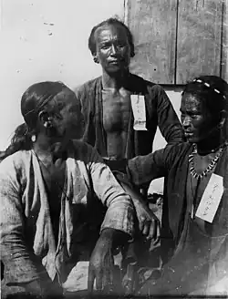The technology of the time allowed for subtle color gradients rather than abrupt changes of color. Another trend was for outer and inner garments of the same design.[17] Another trend in the Meiji era was for women's under-kimono made by combining pieces of different fabric, sometimes of radically different colors and designs.[18] For men, the trend was for highly decorative under-kimono that would be covered by outer kimono that were plain or very simply designed. Even the clothing of infants and young children used bold colors, intricate designs, and materials common to adult fashions.[19] Japanese exports led to kimono becoming an object of fascination in the West.[20]