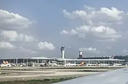 A new international terminal opened on August 14, 2013. Situated at the east side of the existing terminal, this new apron increases international capacity to ten flights, from the previous capacity of three. Construction of this new terminal began on April 18, 2011.[3][4]