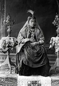 ![]() Manmohini Devi, one of the Meitei queens of Tripura, and the first female self photographer of India[1] | |