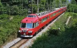Meitetsu is famous for its red trains, including its famous 7000 series "Panorama Car" which was retired in 2009 after a career lasting nearly half a century.[8] The most recent cars, however, are not solid red but rather brushed steel as in the case of the 4000 series and 5000 series, or white as in the case of the 1700 series and 2000 series.[9]