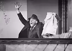 Brooks found more rewarding work behind the scenes, becoming a comedy writer for television. In 1949, his friend Sid Caesar hired him to write jokes for the DuMont/NBC series The Admiral Broadway Revue,[41] paying him, off-the-books, $50 a week. In 1950, Caesar created the innovative variety comedy series Your Show of Shows and hired Brooks as a writer along with Carl Reiner, Neil Simon, Danny Simon, and head writer Mel Tolkin.[17] The writing staff proved widely influential.[42] Reiner, as creator of The Dick Van Dyke Show, based Morey Amsterdam's character Buddy Sorell on Brooks.[43] Likewise, the film My Favorite Year (1982) is loosely based on Brooks's experiences as a writer on the show including an encounter with the actor Errol Flynn.[44] Neil Simon's play Laughter on the 23rd Floor (1993) is also loosely based on the production of the show, and the character Ira Stone is based on Brooks.[45][46] Your Show of Shows ended in 1954 when performer Imogene Coca left to host her own show.[47]